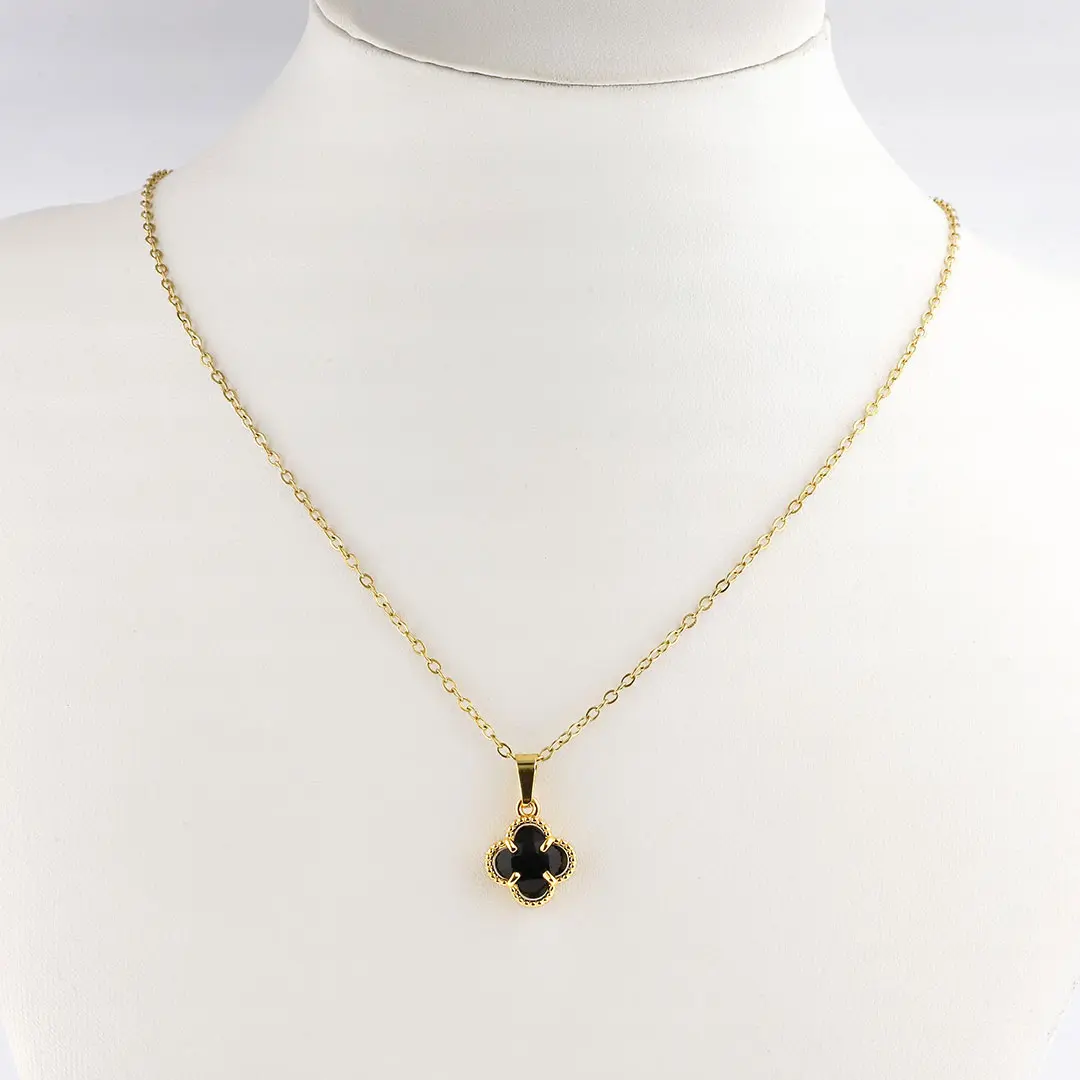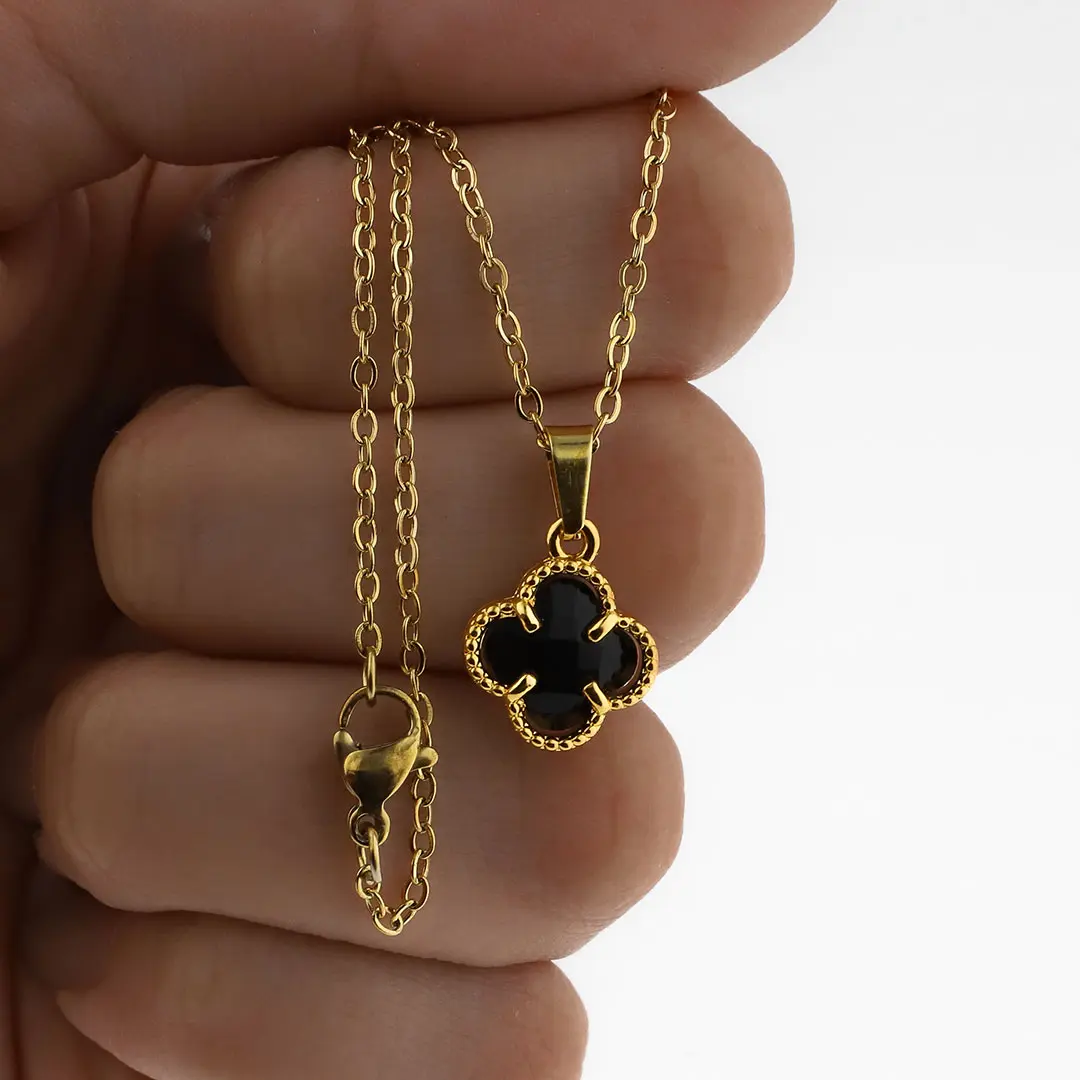 COLGANTE TREBOL NEGRO ACERO DORADO
