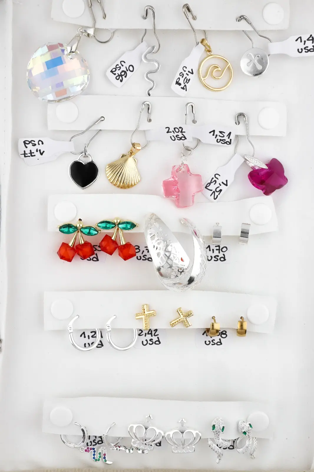 Incluye paño porta joyas, anillos, dijes, pulseras, aros y cadenas.