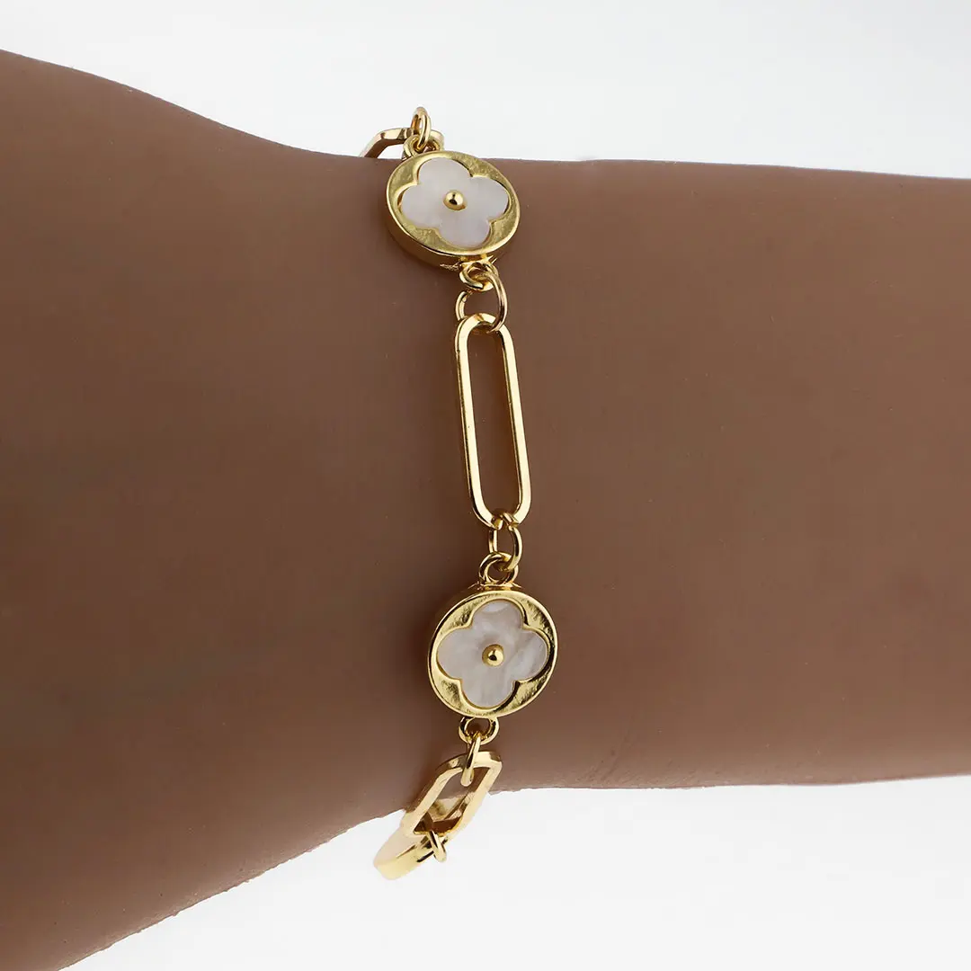 PULSERA TREBOL ACERO DORADO